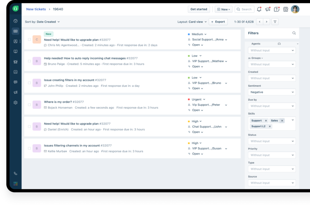 Freshdesk, kullanıcı dostu arayüzü ve güçlü AI entegrasyonları ile öne çıkmaktadır. AI destekli müşteri destek platformları arasında önemli bir konumda olan Freshdesk, müşteri taleplerini analiz ederek en uygun çözümleri sunuyor. Ayrıca chatbot ve otomatik yanıt özellikleri sayesinde müşteri memnuniyetinde ilk sıralarda yer alıyor.