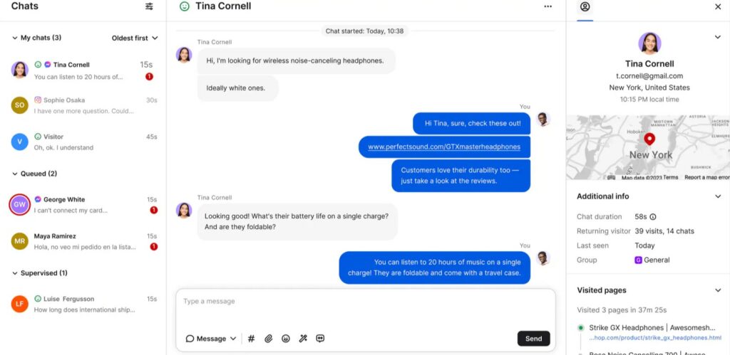 Web sitenizdeki ziyaretçileri gerçek zamanlı olarak izleyebilir, onların davranışlarını ve hareketlerini takip edebilir ve bu bilgileri müşteri desteğini kişiselleştirmek için kullanabilirsiniz.
