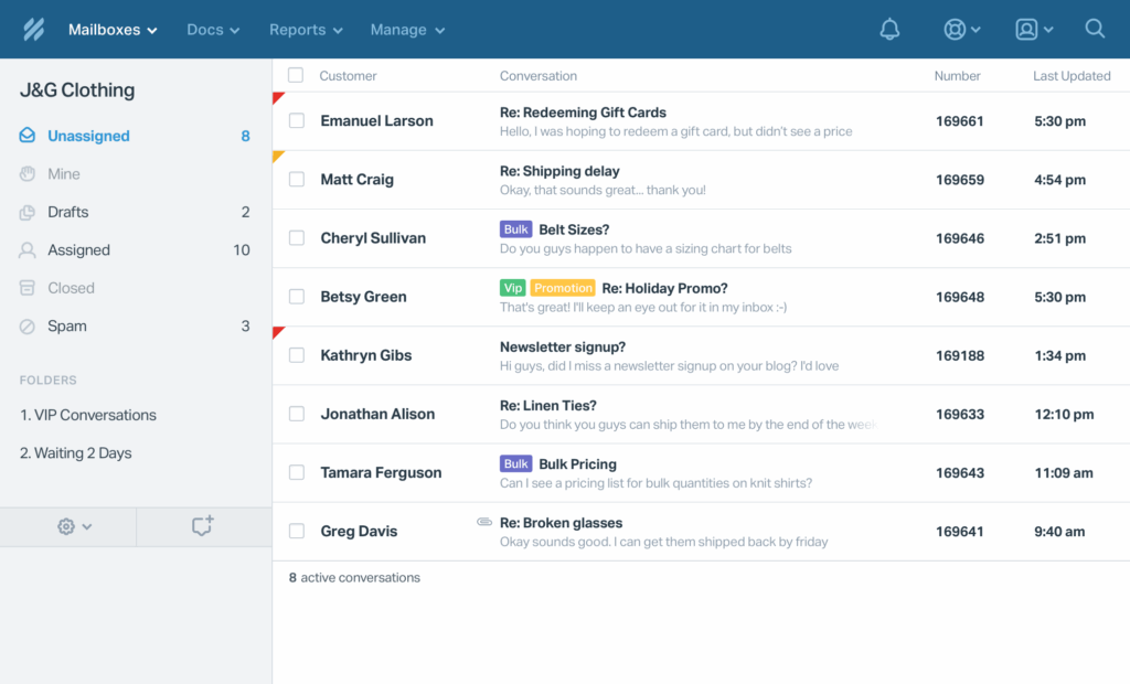 Help Scout, kişiselleştirilmiş müşteri etkileşimlerini vurgular ve destek süreçlerini kolaylaştırmak için kayıtlı yanıtlar, etiketler ve otomasyon gibi özellikler sunar. Kullanıcı dostu bir müşteri destek çözümü arayan küçük ve orta ölçekli işletmeler için uygundur.